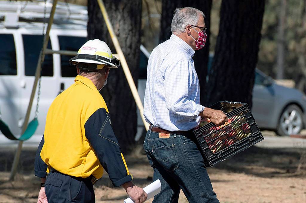 Inslee’s office issued a statement from the governor in which he said he and his wife Trudi picked the apples and he brought them along as a way “to express comfort for the communities suffering from devastating fires.”