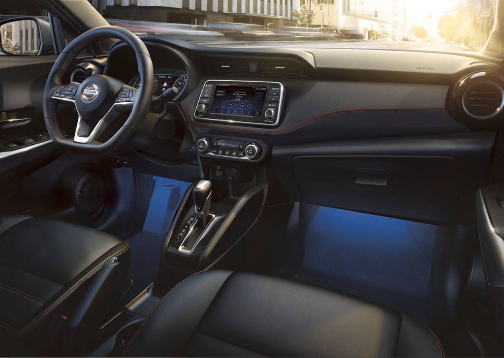 The Kicks interior provides plenty of space for its occupants, even those in the rear seats. The driver’s seat has six-way manual adjustment, including for height. Twenty-five square feet of cargo space is available if rear seats are in upright position, and 53 square feet when seatbacks are folded.