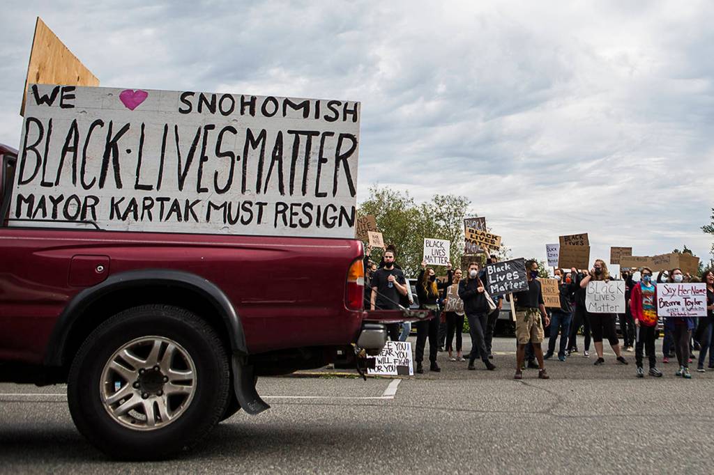 Early in the summer, she and her children joined in the Black Lives Matter protests in Snohomish. Her daughter stood on a sidewalk when a truck fish-tailed in the road, nearly striking the group.