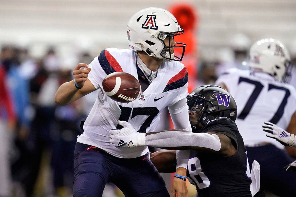 Arizona quarterback Grant Gunnell was 27 of 39 for 259 yards and three touchdowns, almost all of those numbers coming in the fourth quarter against Washington’s reserves. He was sacked five times, twice by Zion Tupuola-Fetui.