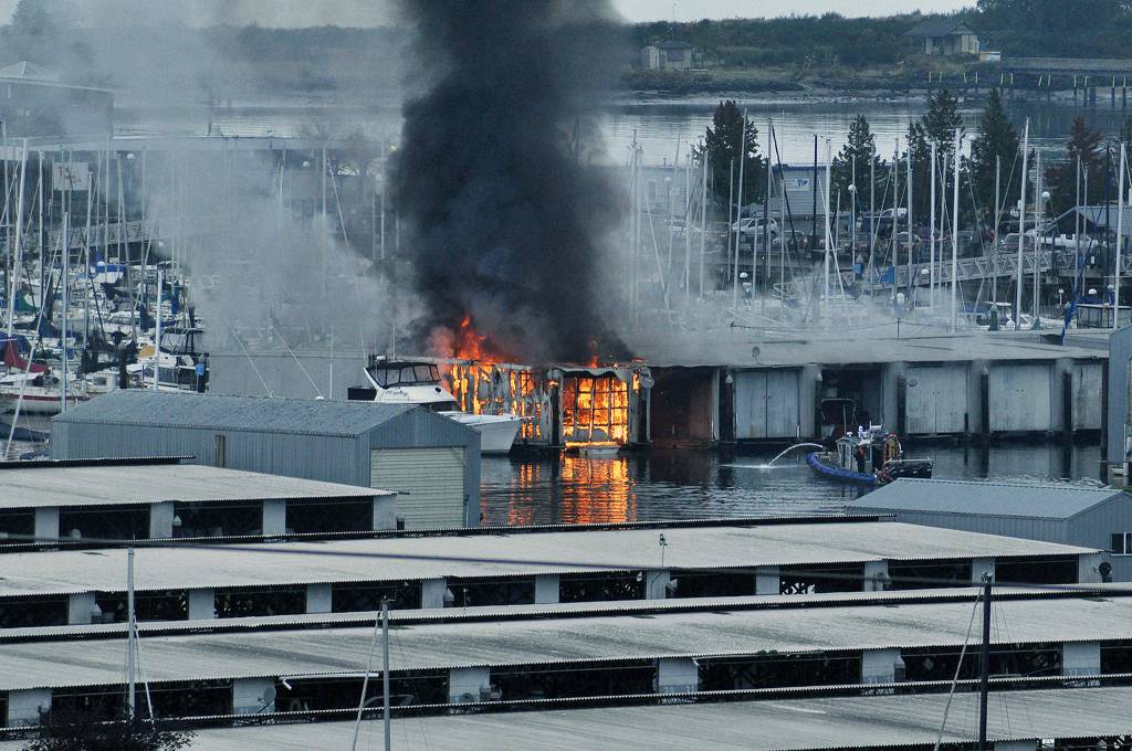 The fire at the Everett marina scorched the man’s 36-foot fiberglass pleasure craft, M/V Discovery, as well as five boathouses on Oct. 8, 2018.