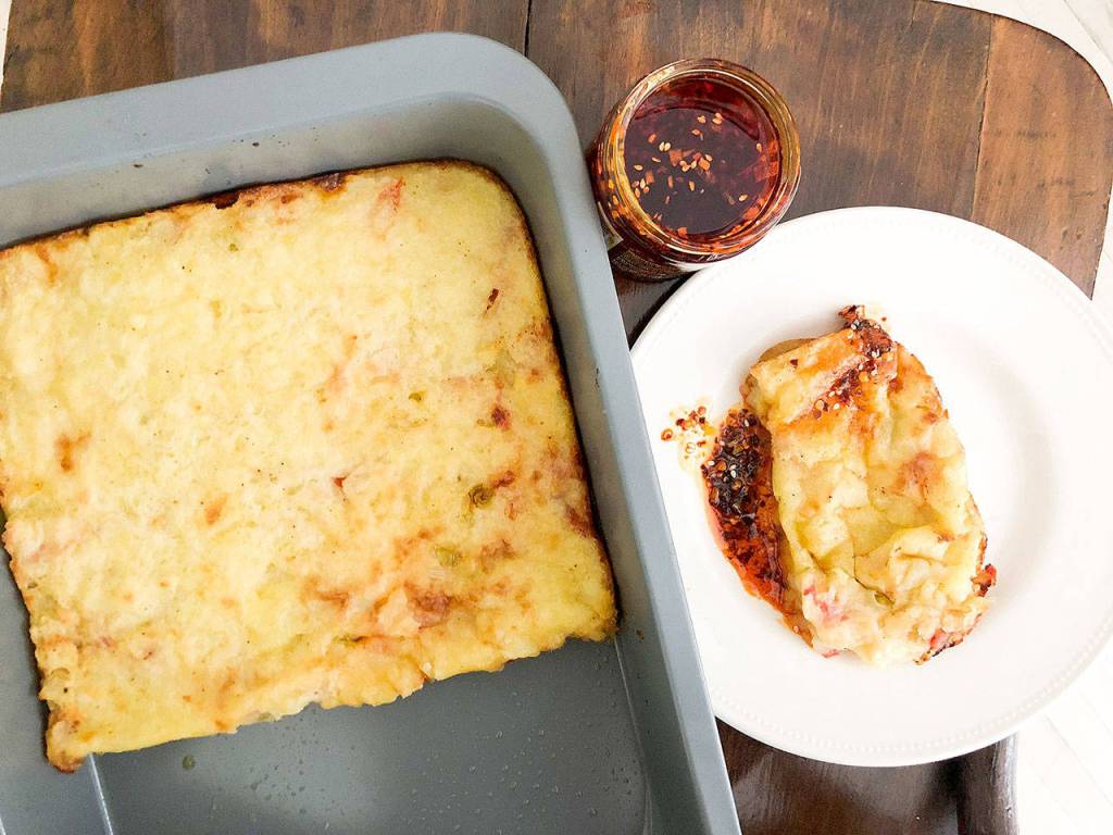 Jamie Oliver's Crispy Cheesy Mashed Potato Pie. MUST CREDIT: Bloomberg photo by Kate Krader