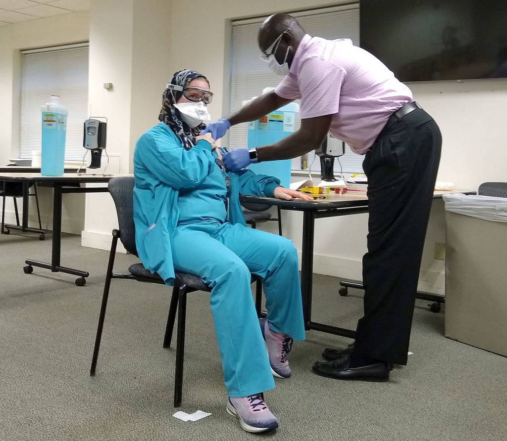 Providence staff get first COVID shots in Snohomish County