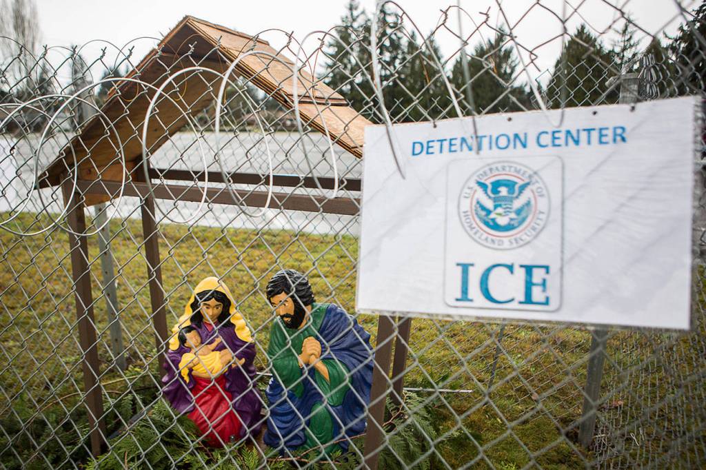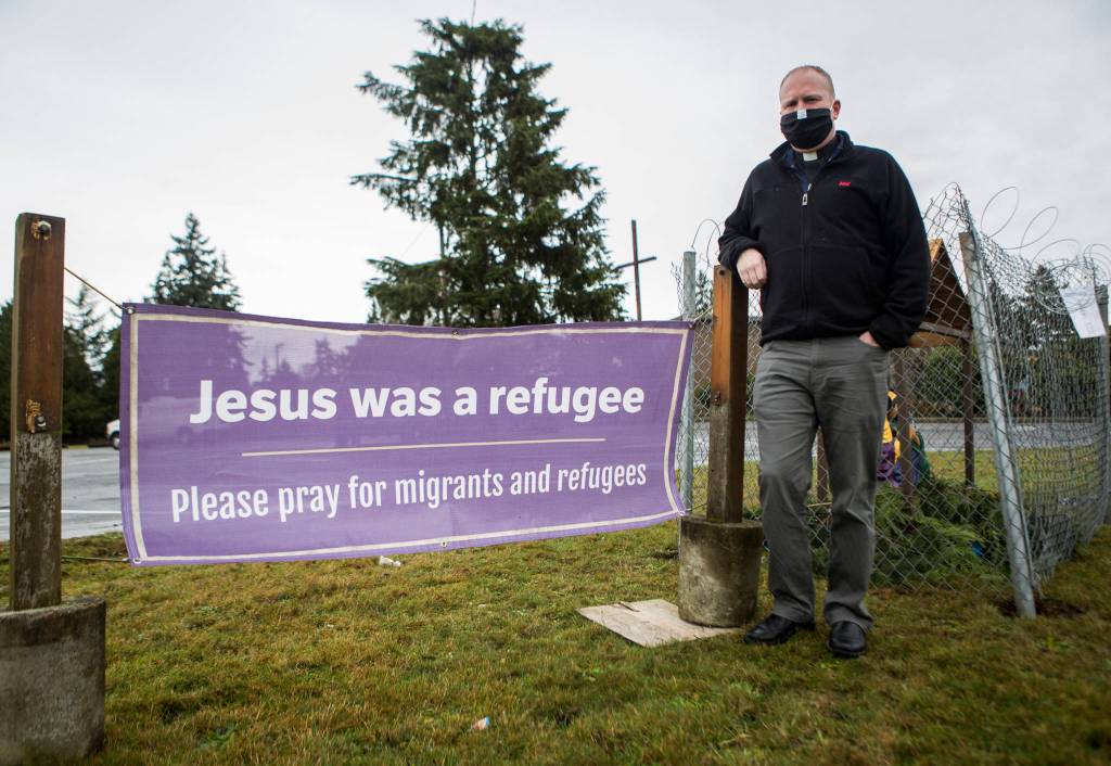 He sees the display’s sign — “Please pray for migrants and refugees” — as a unifying rather than political message. The issue has been long on his mind. “I was aware of this 12 years ago. I visited the Northwest Detention Center,” he said.