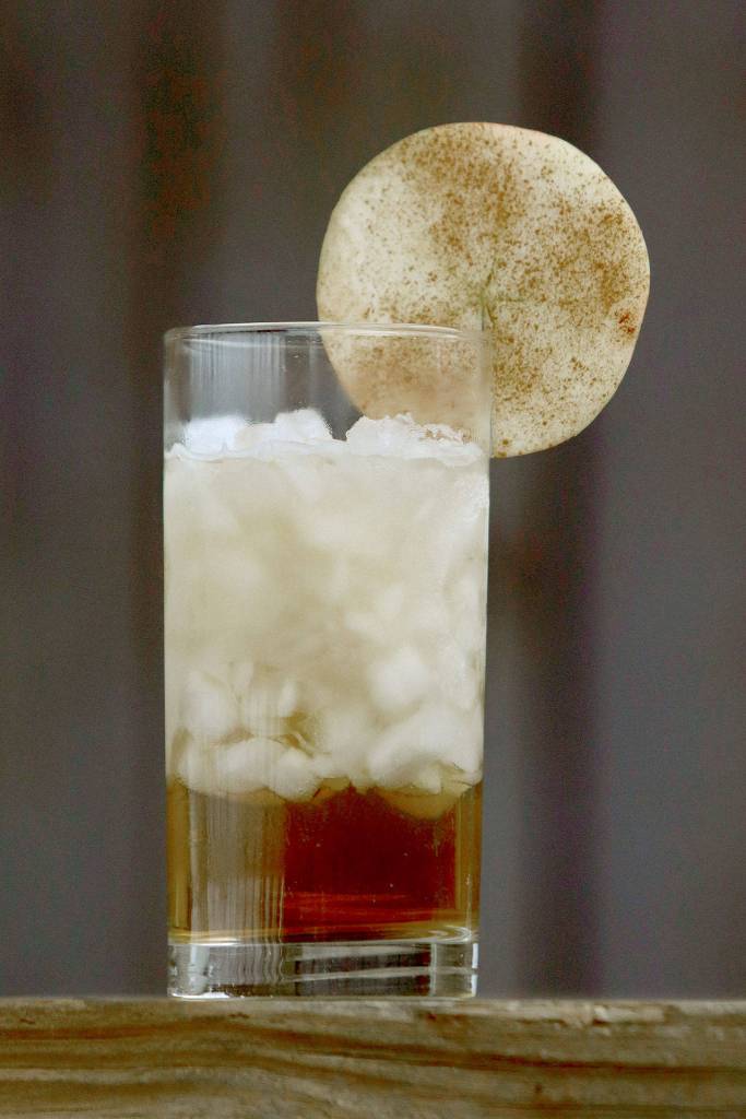 It’s called a Bourbon and Cider, and that is what it is made from, along with a lot of crushed ice. For a garnish, simply add a slice of apple with a sprinkling of cinnamon on it. Cinnamon, needless to say, also goes well with bourbon, and also apples.