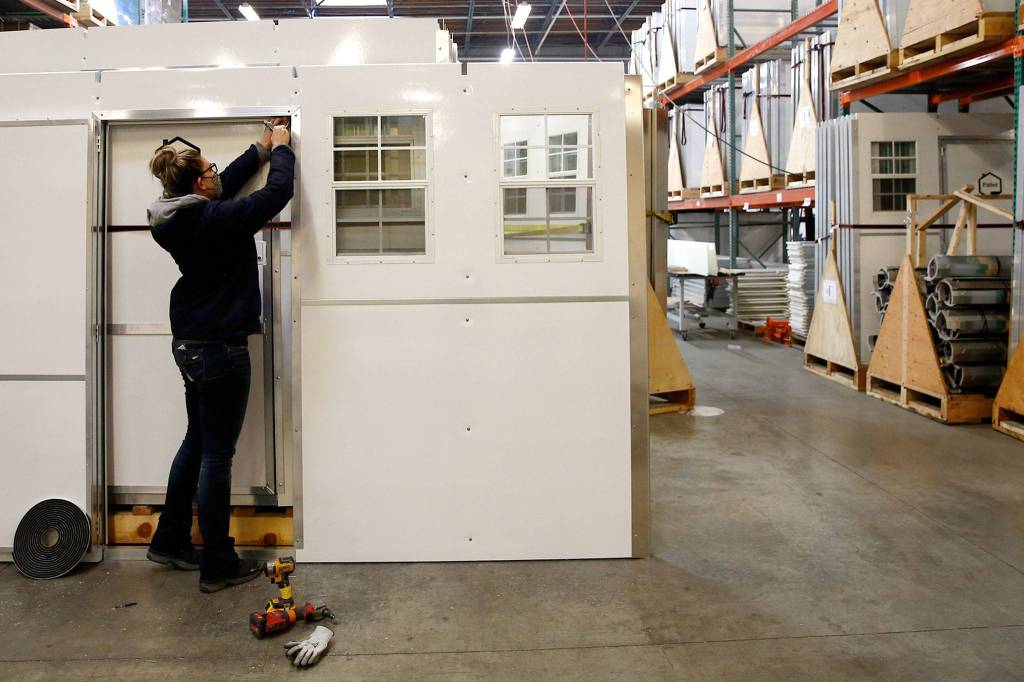 They’re making low-cost personal shelters of aluminum and insulated panels in a factory near Paine Field.