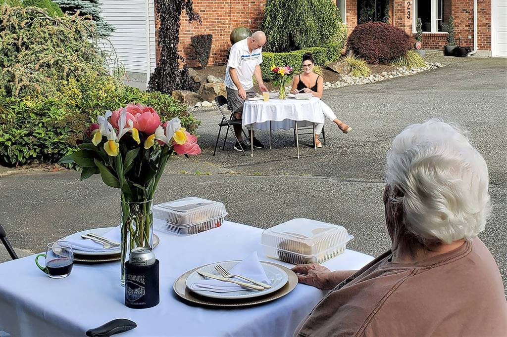 In better weather, they’ve eaten together outside — socially distanced on a deck or in the driveway.