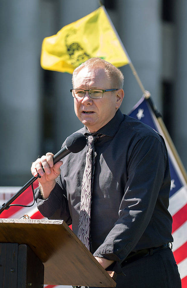 He’s known to show up, armed, at gatherings of like-minded folks, like in Snohomish in May. He’s a frequent speaker at demonstrations organized by fellow conservatives and attended by armed members of militia groups, Proud Boys and other organizations which make law enforcement nervous.