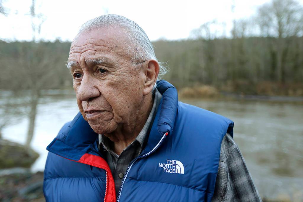 In this Jan. 13, 2014 photo, Billy Frank Jr. poses for a photo near Frank’s Landing on the Nisqually River. (AP Photo/Ted S. Warren, File)