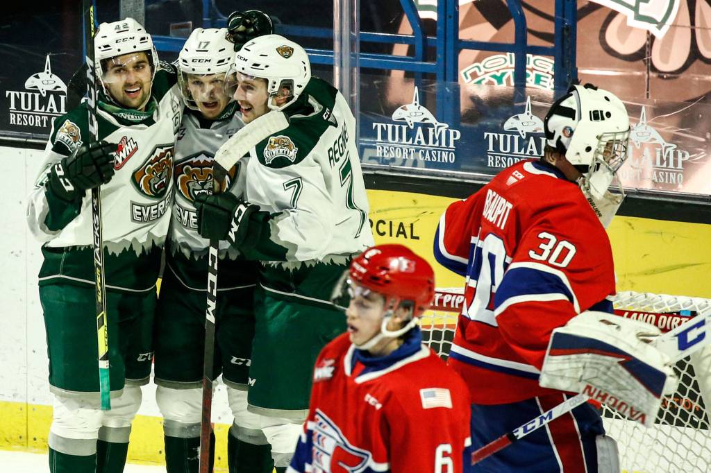 EVERETT — Four different players scored a goal as Everett rolled to a 5-1 win over the Spokane Chiefs in the Silvertips’ final home game of the regular season.