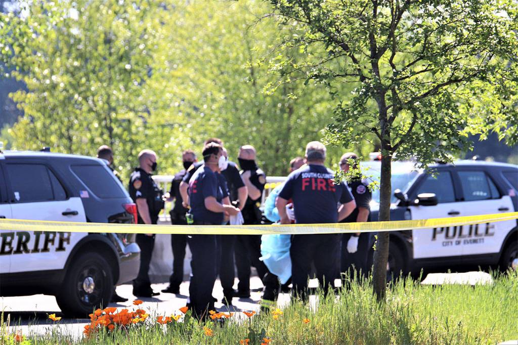 Police reported the man had been walking his dog around 3:30 p.m. Tuesday when he started to yell and “became aggressive towards people” on the sidewalk around Silver Lake, according to Everett police.