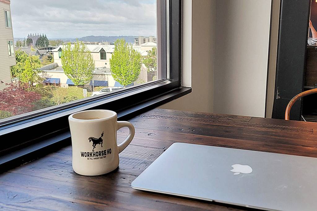 All of these are reasons why Workhorse HQ in Edmonds has intrigued me since it opened last year right around the time the pandemic hit. A shared office space with a pocket-view of Possession Sound, Workforce HQ offers a host of other amenities including WiFi, coffee, locally brewed beer and kombucha on tap, plus the opportunity to work away from unfolded piles of laundry.