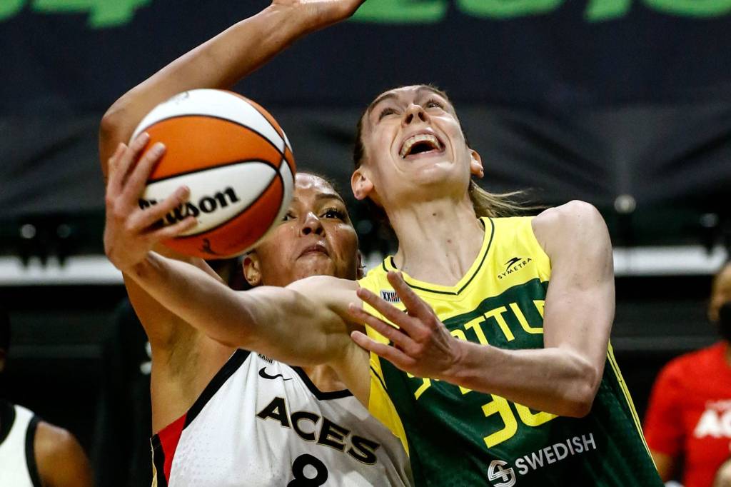 Las Vegas led by as many as 21 points in the first half before Seattle opened the second half on a 13-6 run, with nine points from Jewell Loyd, to get within 51-44. Seattle newcomer Katie Lou Samuelson beat the third-quarter buzzer with a shot near midcourt to pull the Storm to 66-62.