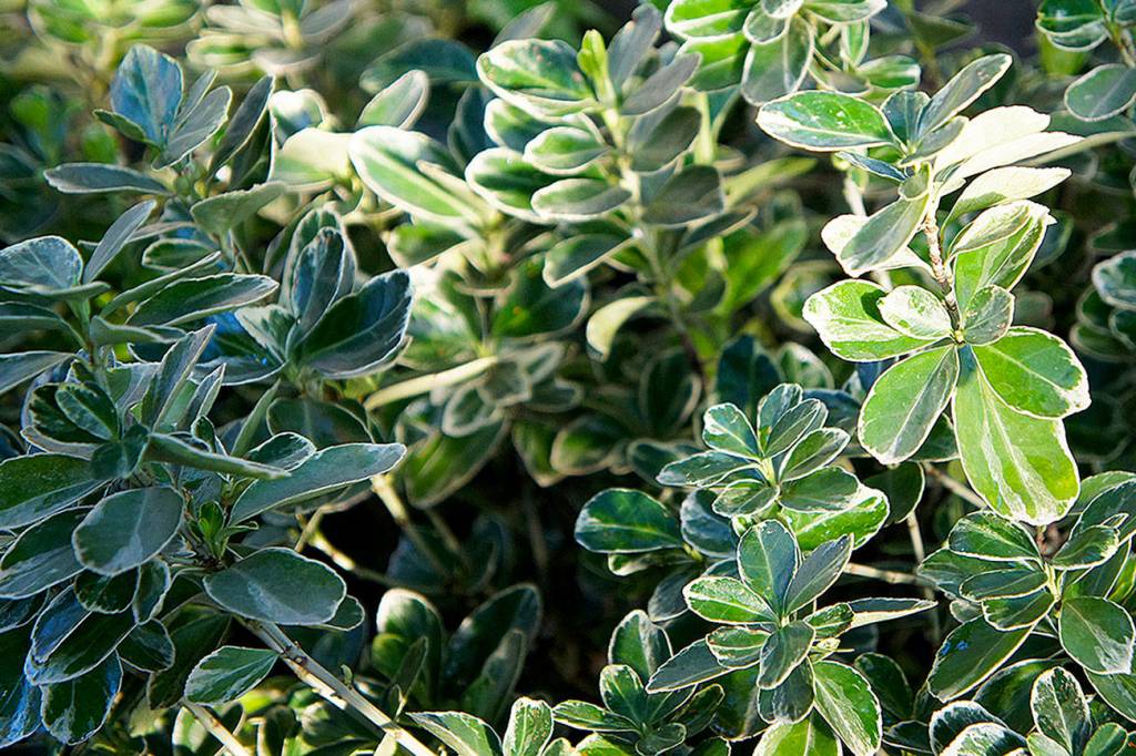 Euonymus japonica is a nice shrub with glossy, 1-inch round leaves that can be found in many commercial settings due to its ease of growing, tolerance of a range of soils and sunlight conditions. Varieties like “Silver King,” “Silver Queen” and “Chollipo,” with their bright green and white variegated foliage, are commonly found. “Paloma Blanca” is a compact variety with smaller leaves that are almost pure white when they first emerge, and “Green Spire,” which sports a tight, upright growth habit is perfect for that narrow 1-foot-wide bed.