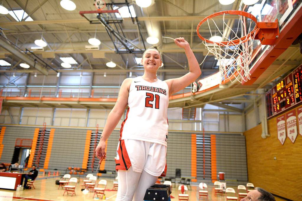 In women’s basketball, the region boiled down to a one-game, winner-takes-all contest between Everett and Bellevue last Saturday at the Walt Price Student Fitness Center. Everett, which was forced into a 14-day quarantine early in the season and played much of the campaign with just six players, rallied from a 2-3 start to win seven straight heading into the final game. The Trojans, behind 15 points and 12 rebounds from Snohomish High School graduate Courtney Perry, 14 points and 10 rebounds from Shorecrest High School graduate Sydney VanNess, and 13 points and 10 rebounds from Marysville Getchell graduate Mikail Montez, raced out to a big lead and coasted to a 67-51 victory to finish 10-3 and edge Bellevue by percentage points. It was Everett’s first region title in women’s’ hoops sine 2007-08.