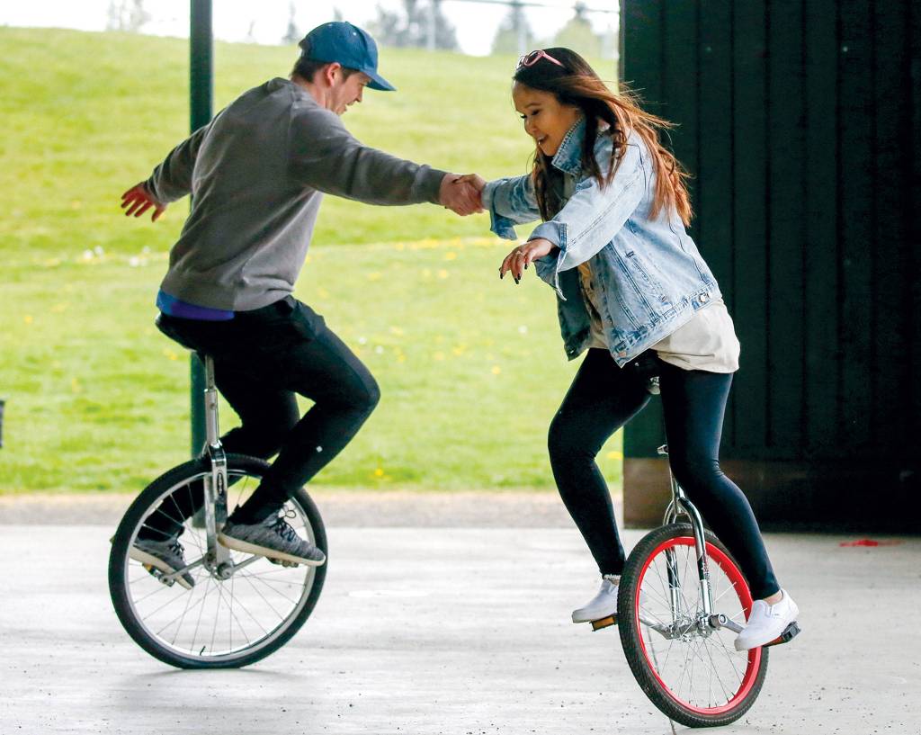 Stephanie Sowers, 28, who now lives in Ireland, remembers performing during those UW basketball games. One of four Maltby sisters who learned to ride under Munizza’s tutelage, she became a top-tier unicyclist. Sowers’ skill earned her a seat on the “giraffe,” the towering unicycle that was sometimes “terrifying and exhilarating,” but was always a show-stopper, she said. She belonged to an elite circle, the 20% of team members who could ride backward.