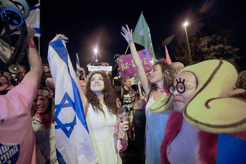 Outside the Knesset, hundreds of protesters watching the vote on a large screen erupted into applause when the new government was approved. Thousands of people, many waving Israeli flags, celebrated in central Tel Aviv’s Rabin Square.