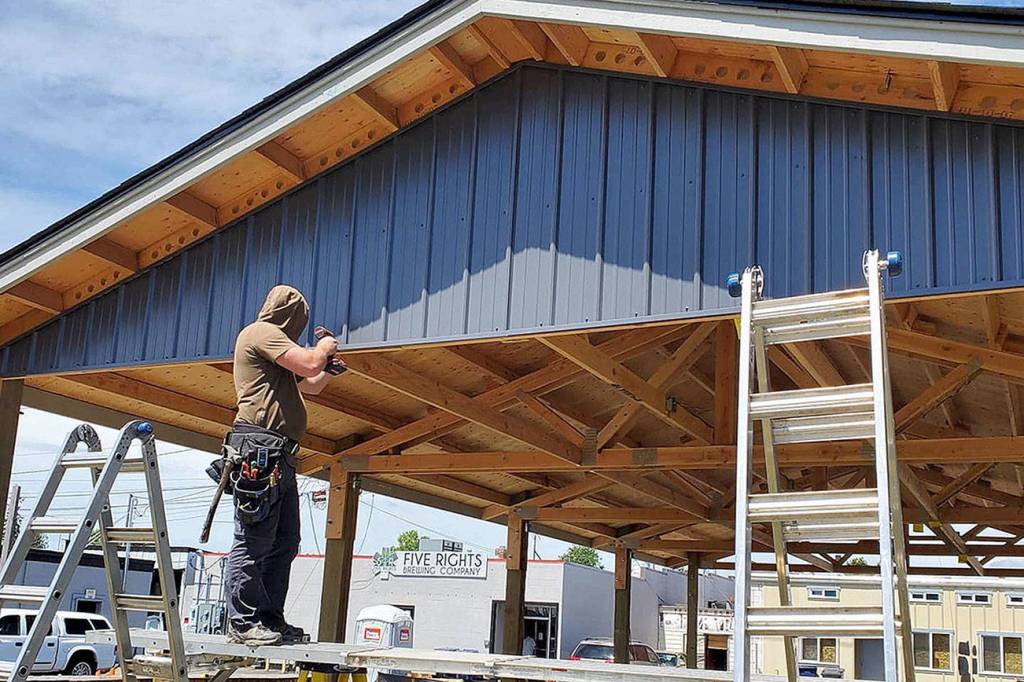 They’ll install the two-story-tall black metal 5 Rights sign intended for the Lake Stevens location on their Second Street Community Pavilion.