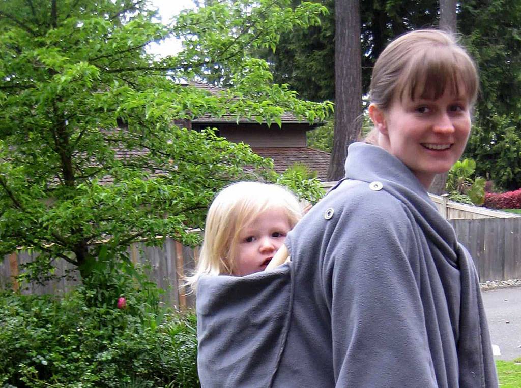 I had a giant cape with two holes cut in the middle of it; one for my head, and one for my baby. Give me the Ergo, the cape, and a golf umbrella, and we were weatherproof.