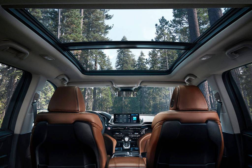 Every 2022 Acura MDX model has a standard panoramic sunroof with power sunshade. The A-Spec interior is shown here. (Manufacturer photo)