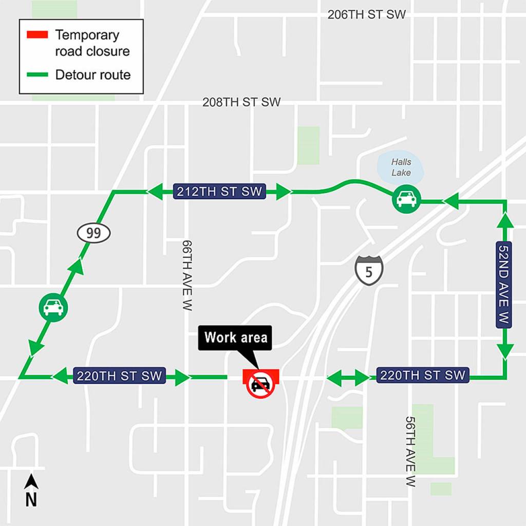 Overnight work to close 220th Street SW and southbound I-5