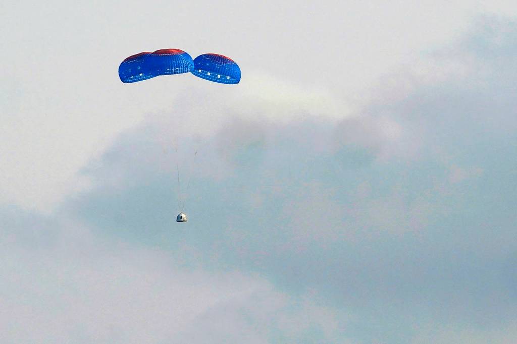 During their several minutes of weightlessness, video from inside the capsule showed the four floating, doing somersaults, tossing Skittles candies and throwing balls. Cheering, whooping and exclamations of “wow” could be heard. The capsule landed under parachutes, with Bezos and his guests briefly experiencing nearly six times the force of gravity, or 6 G’s, on the way back.