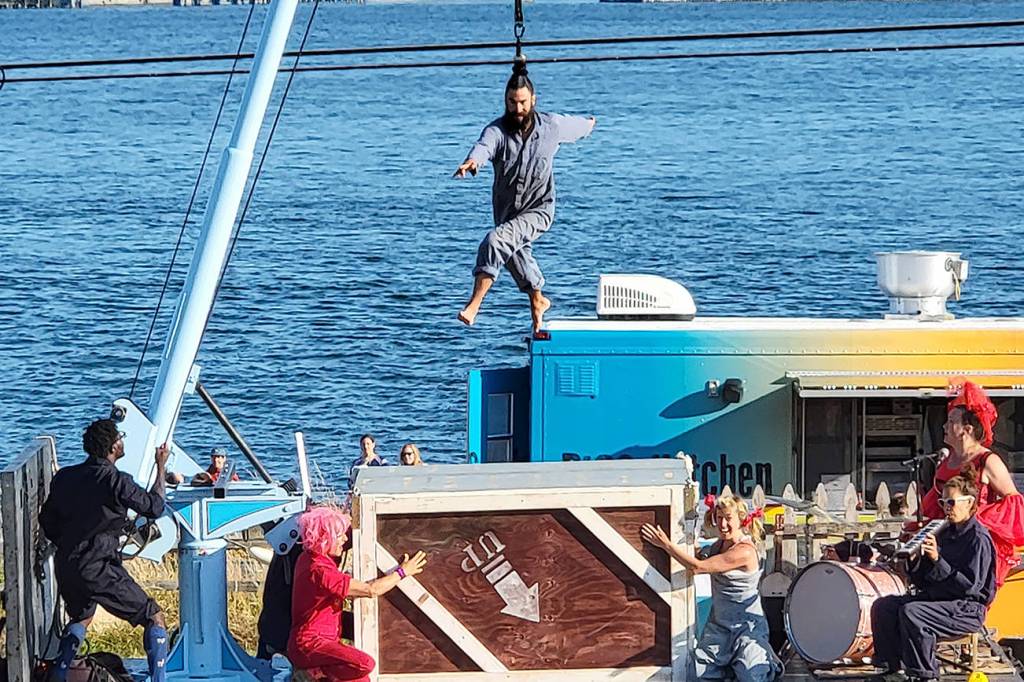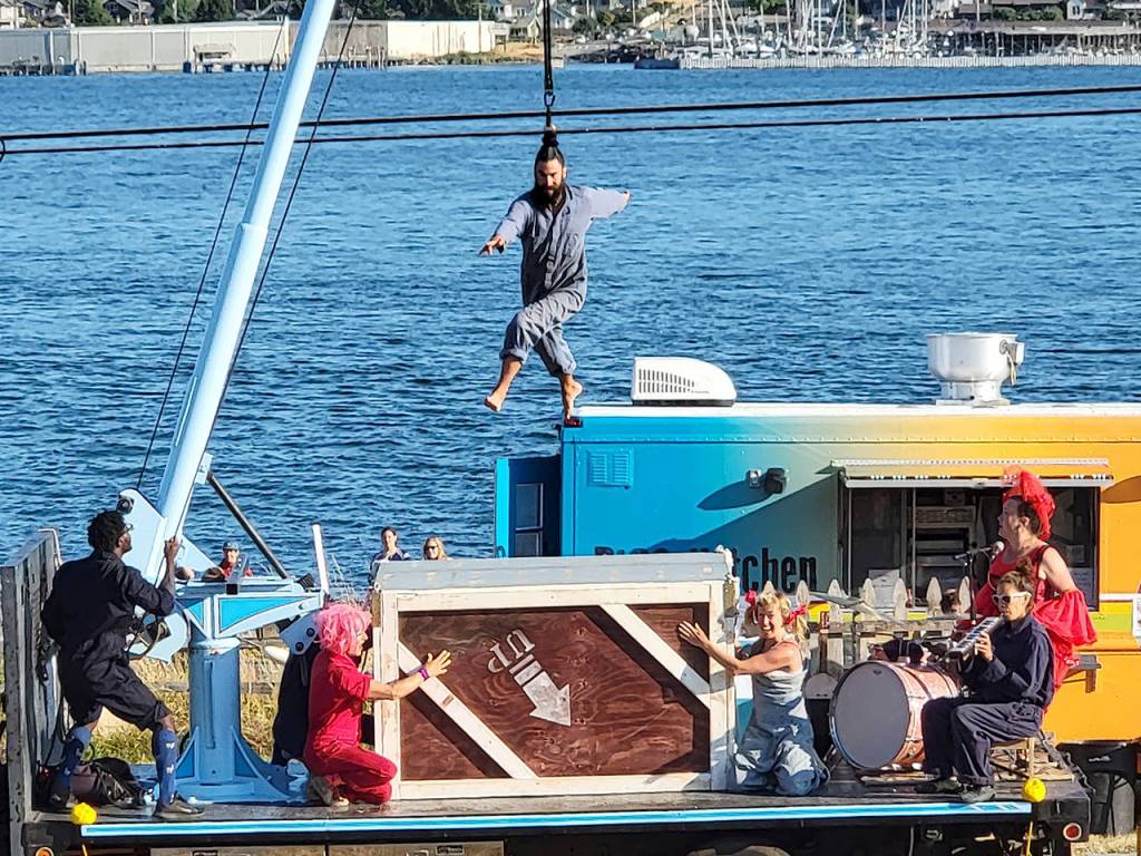 Webley hopes to take his Flotsam circus boat out for a few shows on Lake Washington later this summer, where cast members of Up Up Up will join him.