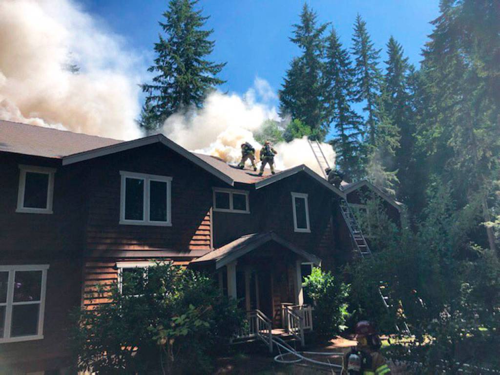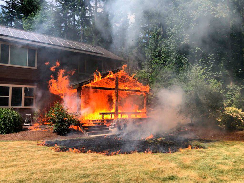 A homeowner arrived at his two-story house around 2:40 p.m. in the 18600 block of 65th Ave SE and heard crackling, Snohomish Regional Fire and Rescue spokesperson Heather Chadwick said. He found a fire on the back deck and tried to extinguish it, but it spread. He called 911.