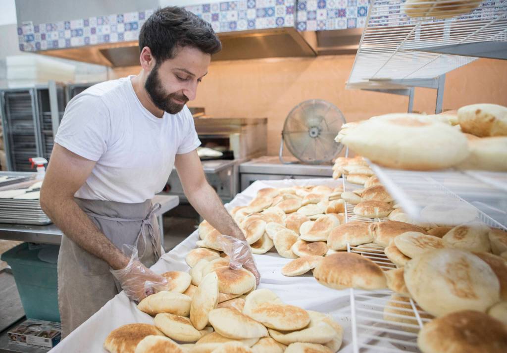 Today the bakery’s staples include naan pita pocket bread and Iraqi samoon, a puffy, football-shaped flatbread that’s made from the same dough as pita.