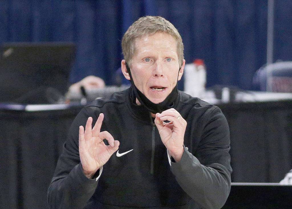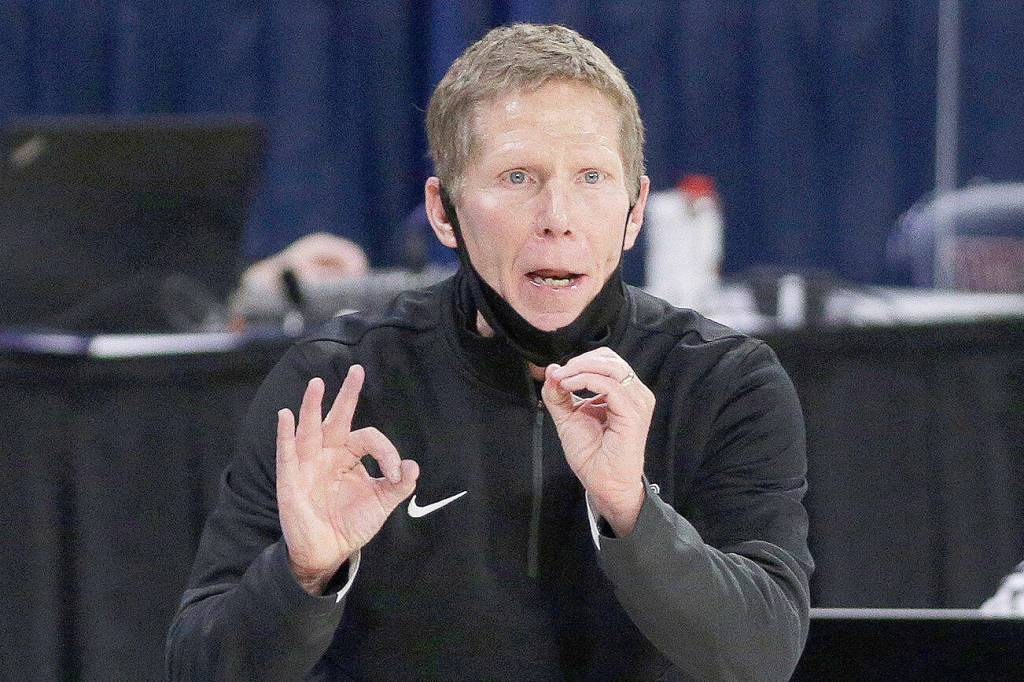 Gonzaga coach Mark Few signals to players during the second half of a game against Santa Clara on Feb. 25, 2021, in Spokane. (AP Photo/Young Kwak)