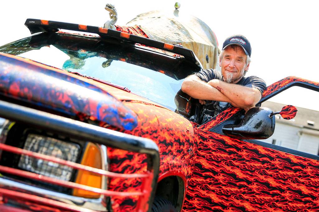 Struck covered the truck with several other fabric coats that faded and peeled before the recent makeover in red flames.