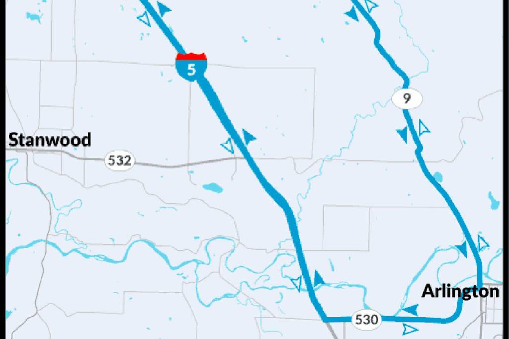 Delays up to 45 minutes are possible. Drivers are encouraged to use other routes. A detour will direct them to I-5 via Highways 530 and 534.