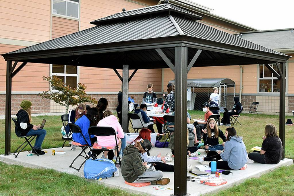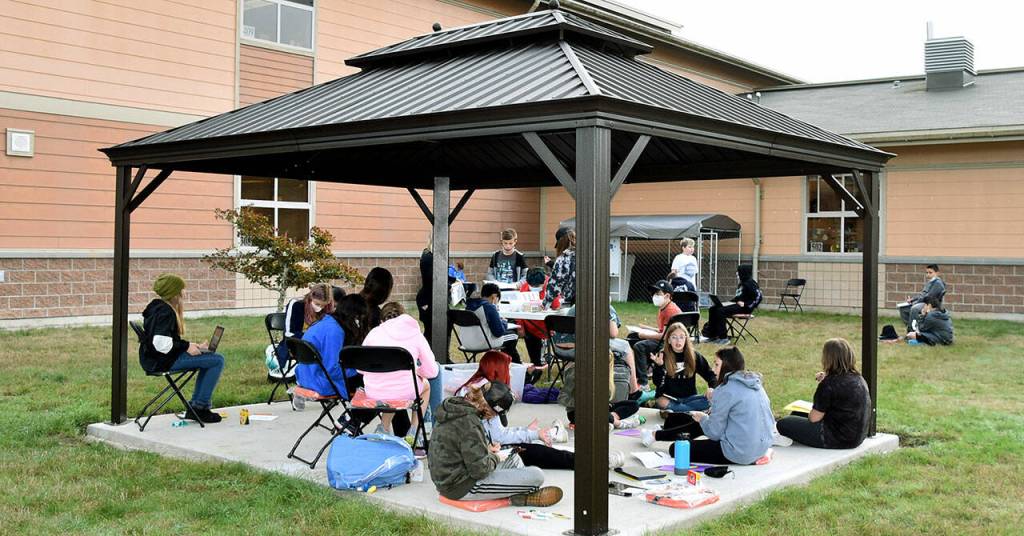 A new outdoor classroom at Haller Middle School in Arlington is allowing students to take a mask break and interact with each other in a unique learning setting. Current state Department of Health guidance allows students to remove facial coverings when they’re outside.