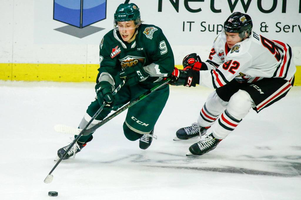 Everett put it away with two goals in two minutes midway through the third. First, Swetlikoff latched onto a loose puck, shielded off a defender while streaking down the ice, then beat Giannuzzi stick side at 9:28. Shortly after, Aidan Sutter’s long outlet pass off the boards gave Berezowski a breakaway, and Berezowski also scored stick side, making it 4-0 at 11:13.