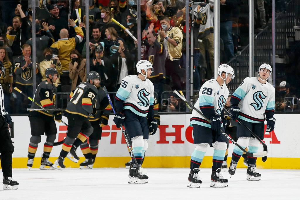 LAS VEGAS — It began not with a bang, but a wince — two goals yielded by the Seattle Kraken in the first 6 minutes and 36 seconds of its NHL existence.