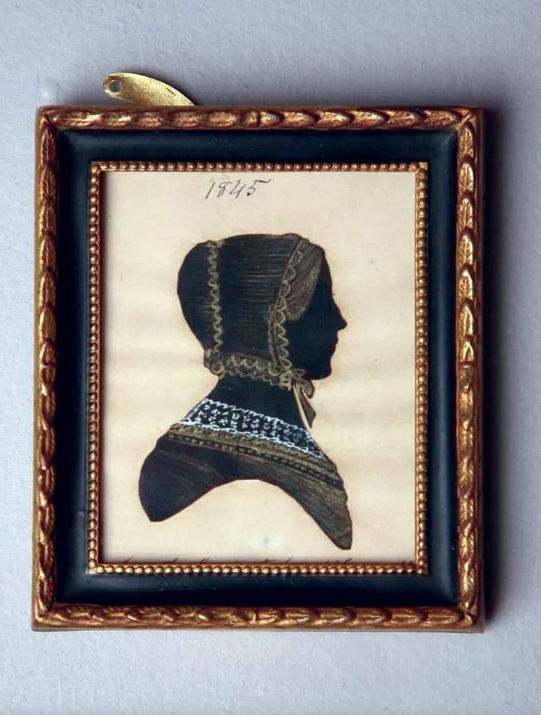 Circa 1800 silhouette of woman in a bonnet was ‘cut by mouth’