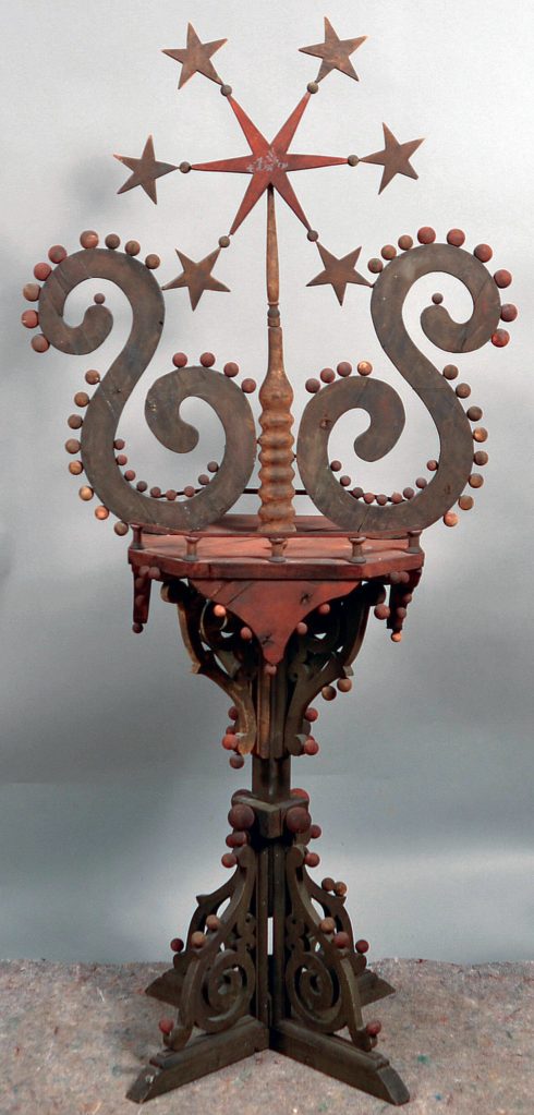 John (or Johannes) Scholl (1827-1916) carved with a jackknife and then used paint. He was a woodcarver whose work was praised long after his death. He made folk art whimsies, carved decorations of fancy shapes that are thought to be among the most important pieces of folk art in the 20th century.