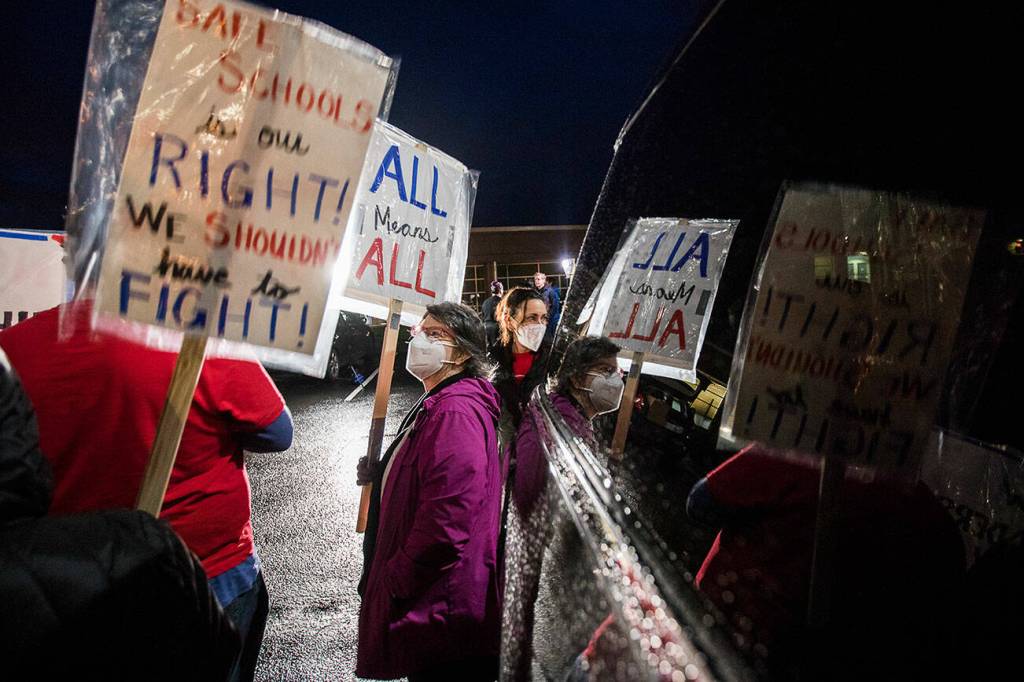 “Monroe students receive their public education in fear and staff work in fear,” said Hayashi, a middle school teacher. “Monroe schools have become more and more hostile for students of color, female students, students with disabilities and LGBTQ+ students, and Superintendent Justin Blasko has refused to take action to improve the culture and climate in our schools.”