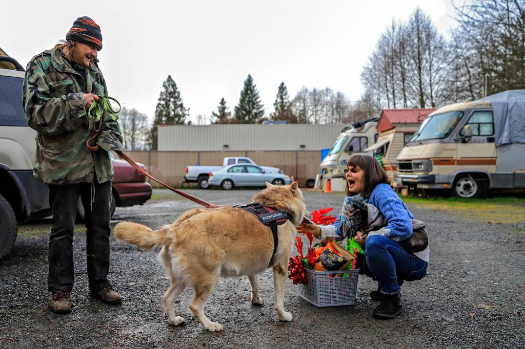 “It’s definitely given me a better frame of mind,” said Coty, 61, standing outside of the Coachmen travel trailer with Bella. “It’s made my life a lot easier to try to get back on track.”