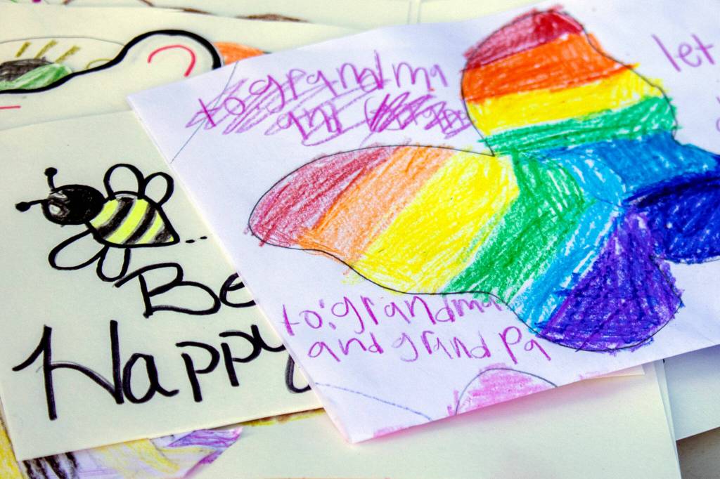 Volunteers made 52 bags of snacks, puzzles and handmade cards for residents at the Grandview Village senior living facility, who have been mostly isolated for the past 18 months. Kids from the YMCA’s child care sites made cards for the seniors, some adorned with drawings of butterflies and sunshine. Many of the cards were addressed to “grandma” or “grandpa.”