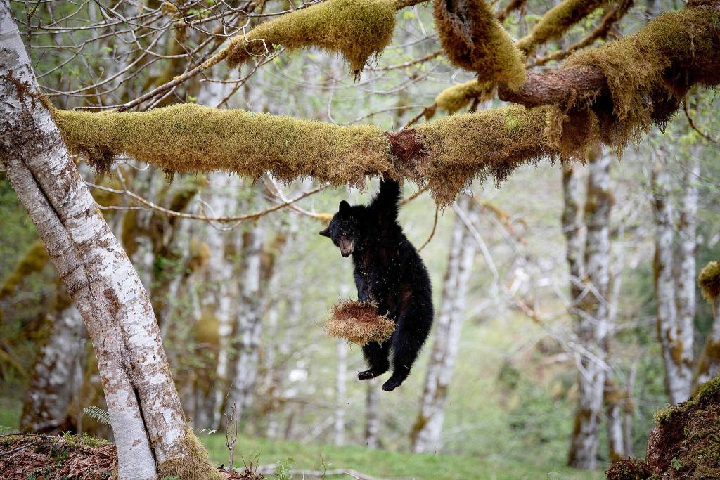 “My friends and I saw this bear cub playing in a huge bigleaf maple tree near the trail while its mother grazed nearby,” he said. “It kept climbing up the tree and then dangling as long as possible from one of the lower branches before reluctantly falling to the ground. It repeated this over and over again. We were delighted to see this behavior, which none of us had seen before. I couldn’t miss the opportunity to unpack my camera and capture this image with my telephoto zoom lens.”