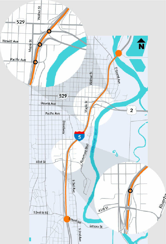 Work will take place between Lowell Road, which runs under I-5, and the Snohomish River Bridge, about 3½ miles of some of the most congested roadway in the state. An estimated 165,000 vehicles used that stretch every day in 2020, according to state data.