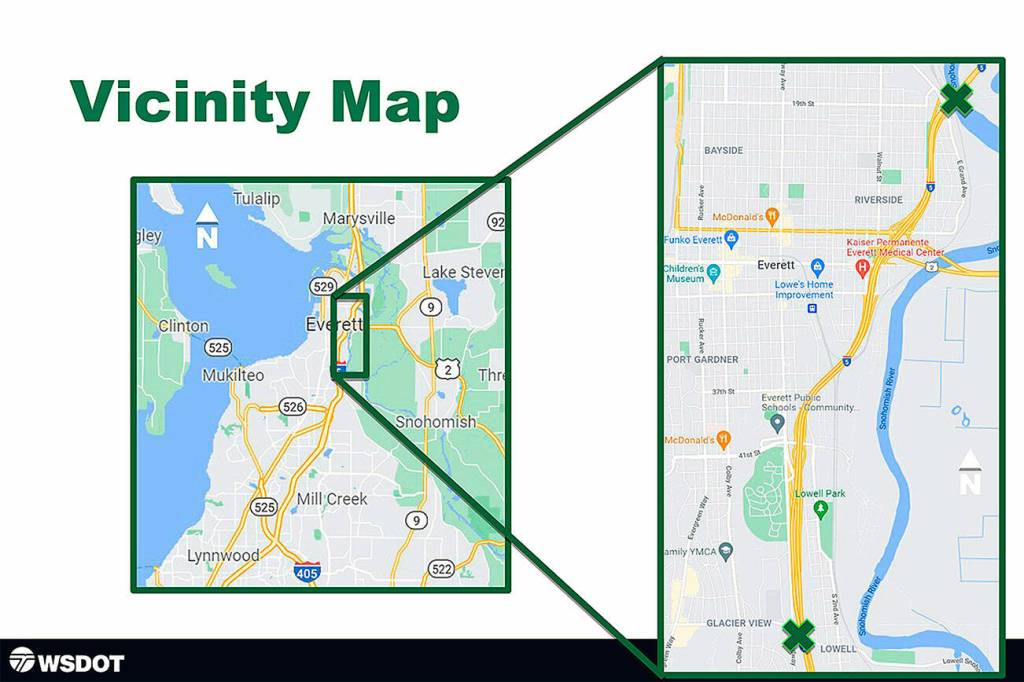 Everett’s traffic engineering staff expect added congestion on Broadway and other major routes. They plan to add time to light cycles along Broadway for northbound traffic on weekends when I-5 loses lanes. Everett Public Works spokesperson Kathleen Baxter said they hope it keeps drivers from using side streets.