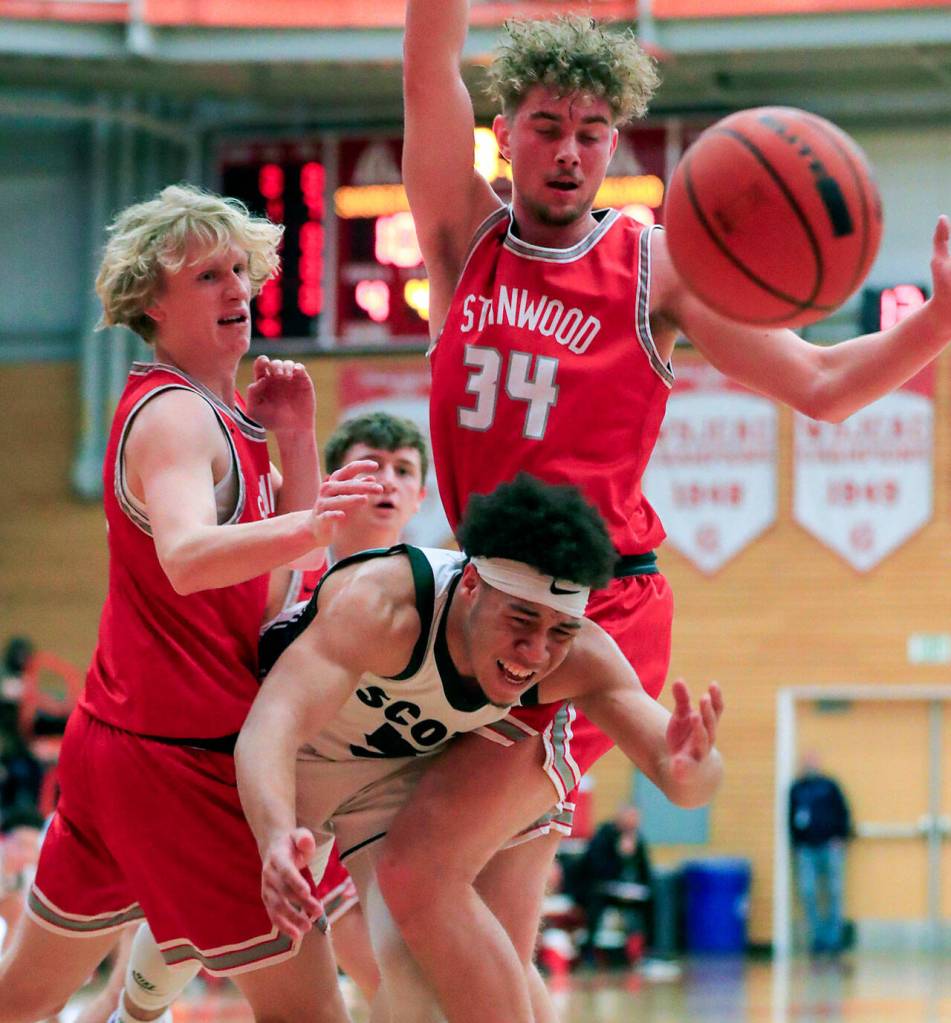 Kaeden McGlothin had 15 points and nine boards to lead third-seeded Stanwood, which ended its season 14-8. Mack Hepper and John Floyd each chipped in with 11 points.