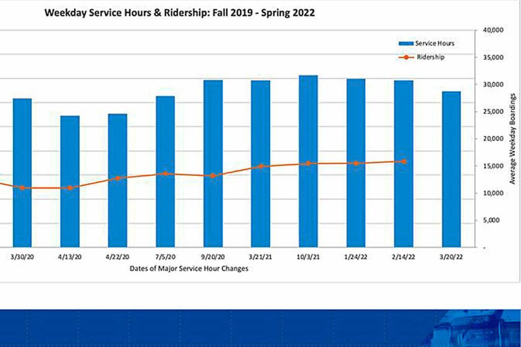 Community Transit’s ridership is 55% of what it was before the pandemic.