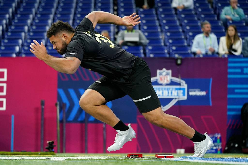 INDIANAPOLIS — Washington State offensive lineman Abraham Lucas, an Archbishop Murphy alum, posted a 4.92 40-yard dash time, tied for fifth-fastest among all offensive linemen on Friday at the NFL scouting combine in Indianapolis.