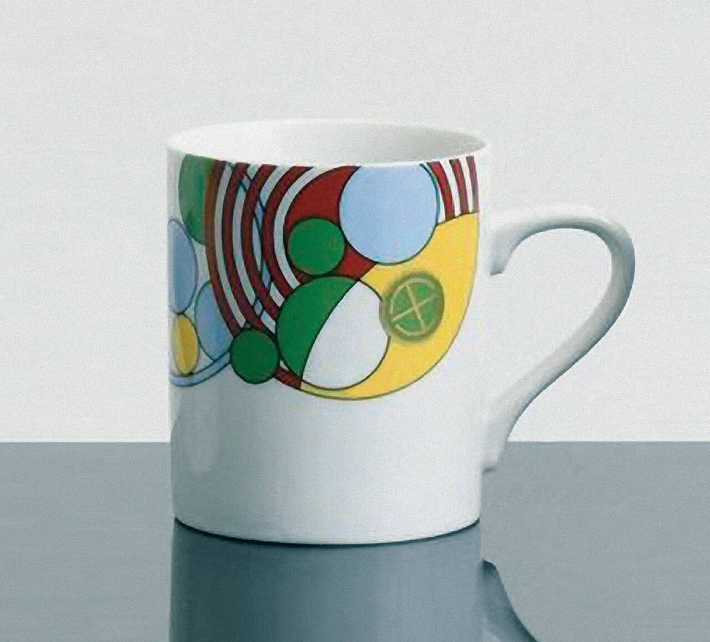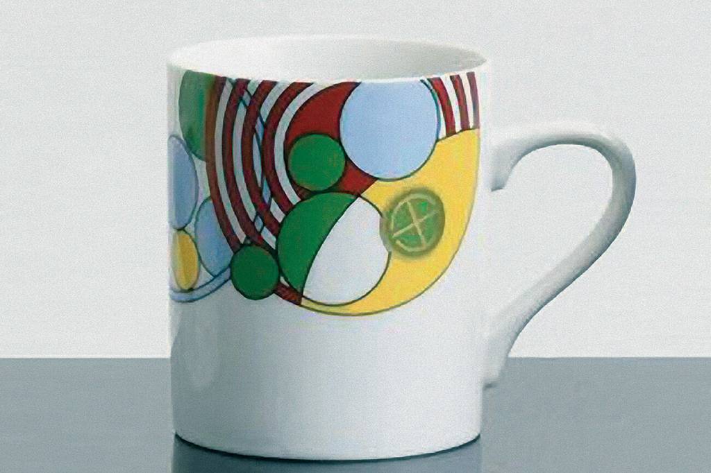 Known as the Cabaret pattern, this porcelain dinnerware was designed for the Cabaret Dining Room of the Imperial Hotel, which opened in 1923. The circular art-deco-inspired design was Wright’s interpretation of champagne bubbles overflowing across the place settings. The strategically placed red on the cup’s rim has been suggested to conceal lipstick prints from women drinking from the coffee cups.
