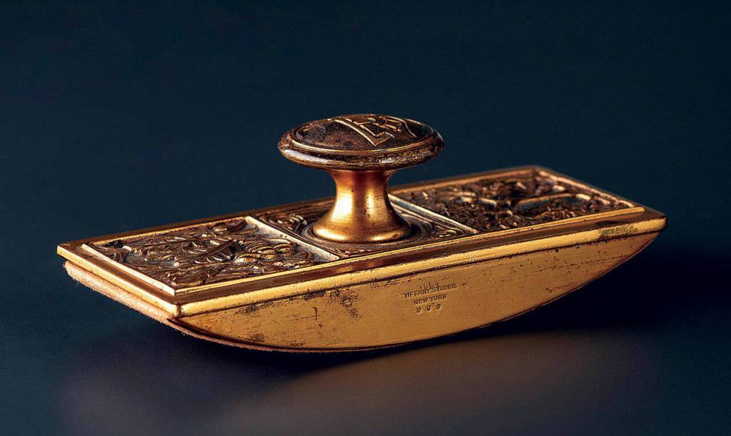 Tiffany Studios is synonymous with luxury and decorative items like jewelry, useful pieces made of precious metals and elaborate stained-glass lamps. The company also made practical objects, such as its line of commercial desk accessories made from about 1890 to the 1930s.