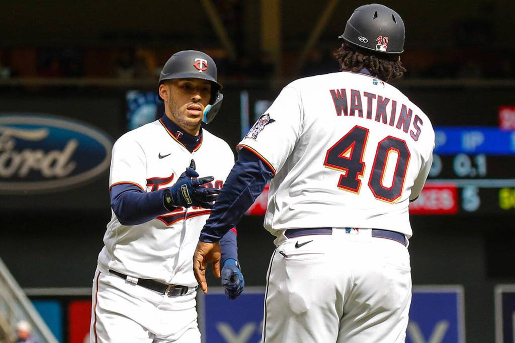 Sánchez sent a grand slam into the third deck and Byron Buxton had two of Minnesota’s six home runs as the Twins slugged their way past the Seattle Mariners 10-4 on Sunday for their first victory of the season.