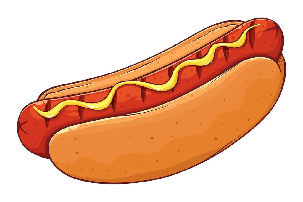 Delicious classic american hot dog with mustard, hand drawn vector illustration isolated on white background